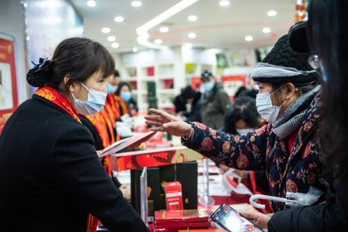 1月5日,購買《辛丑年》特種郵票的貴陽市民排隊進入銷售大廳。新華社記者 陶亮 攝
