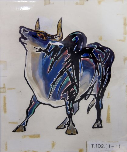 這是姚鐘華為《乙丑年》(1985年)特種郵票繪制的稿樣原件(1月5日攝)。新華社記者 李賀 攝