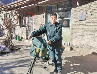 分揀之后,王懷敬出發了。每天,他要完成周邊4個大村15個投遞點、200多戶村民的郵件收發工作。“村里的路不好走,到處都是高坡,電動車怕走著走著就沒電了,還是自行車靠譜,騎不動了,就推著走。”27年來,王懷敬送件,靠的是一輛自行車和兩個挎包。
