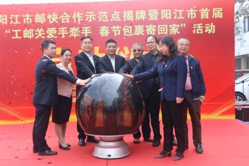 1月27日,陽江市首個“郵快合作”示范點在廣東廣青金屬科技有限公司正式揭牌成立,有效解決該企業4000多名員工收寄快遞難題。活動當天,陽江市總工會也正式啟動該市首屆“工郵關愛手牽手,春節包裹寄回家”活動,為企業異地務工人員給遠在家鄉的親人寄去一份心意和關愛,提高他們留在陽江過年的幸福感和獲得感。