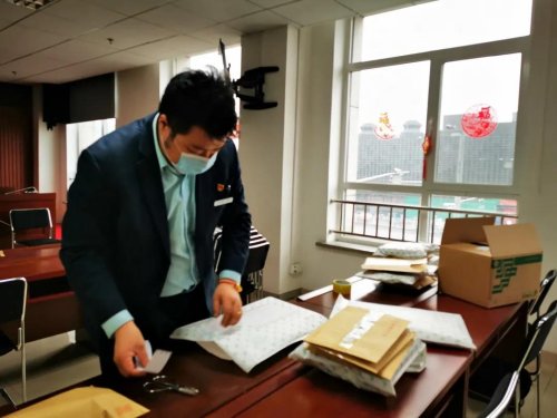 按照分工,柴閃閃負責代表團內(nèi)的服務工作,陳蘭穎負責和代表團以及駐地溝通,在符合代表團規(guī)定和疫情防控要求的前提下提供郵政服務。3月6日中午時分,柴閃閃急匆匆地扒拉了兩口飯,就回到房間,一張張地將有需求的代表和工作人員填好的、由陳蘭穎特別制作的兩會服務單拍照回傳給她。東四郵局內(nèi),隨著手機上微信信息不斷響起,陳蘭穎帶著工作人員仔細對照服務單,給代表和工作人員分裝郵件。陳蘭穎說:“我的手機24小時開機,有不清楚的問題,無論是閃閃還是其他代表可以隨時找我。”晚上7點,經(jīng)過嚴格消毒處理的郵件被東四郵局的工作人員送到代表團駐地,以“無接觸”的形式由工作人員領(lǐng)走。