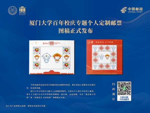 中國郵政定于2021年4月6日發行《廈門大學建校一百周年》紀念郵票一套1枚,郵票面值為1.20元。