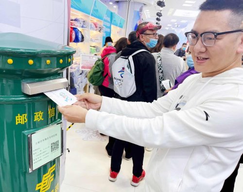 4月10日是北京冬奧會開幕倒計時300天,在王府井工美大廈一層的北京2022官方特許商品旗艦店內,多款倒計時系列產品集中亮相。當日,中國郵政集團有限公司北京市分公司發行的一款倒計時300天系列紀念封,在冬奧旗艦店內亮相首發,紀念封上貼有北京2022年冬奧會吉祥物郵票,十分具有紀念意義。活動當天,紀念封設計者也蒞臨冬奧旗艦店現場,講述產品設計背后的故事,并進行了現場簽售。除熱鬧的簽售現場外,冬奧旗艦店內的郵筒也吸引了現場顧客的關注,有顧客選擇購買倒計時300天紀念封后,直接通過郵筒寄出,別有紀念意義。