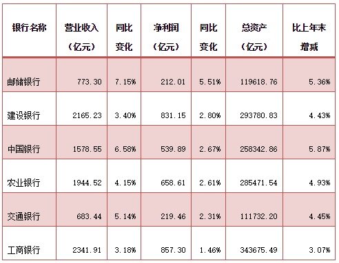 2021年1-3月,郵儲銀行實現營業收入773.30億元,同比增長7.15%;實現歸屬于銀行股東的凈利潤212.01億元,同比增長5.51%。截至2021年3月31日,郵儲銀行的資產總額為119618.76億元,比上年末增長5.36%。