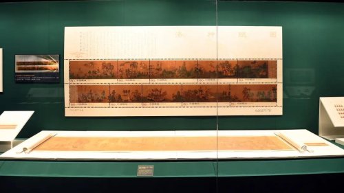 展覽現(xiàn)場,共展出郵票56套1732枚(含故宮主題郵票52套1590枚)、郵票手稿等珍貴展品54件、聯(lián)合發(fā)行首日封13件;配合郵票展出的25件故宮文物,涵蓋書畫、玉器、琺瑯器、青銅器、瓷器、家具等多個(gè)門類,與同主題的郵票交相輝映。
