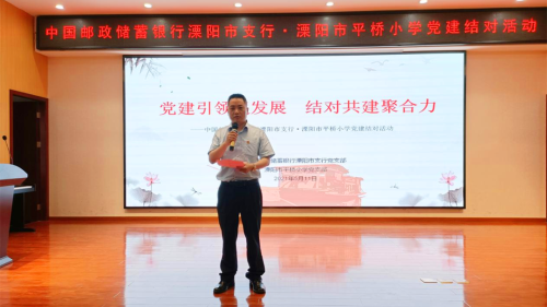 黨建引領促發展,結對共建聚合力。今后,郵儲銀行溧陽市支行將繼續推進基層黨組織“共建、共享、共進”2.0主題活動,以共建共享為基礎,以合作共贏為目的,實現黨建工作和業務工作雙融合、雙促進、雙提升。
