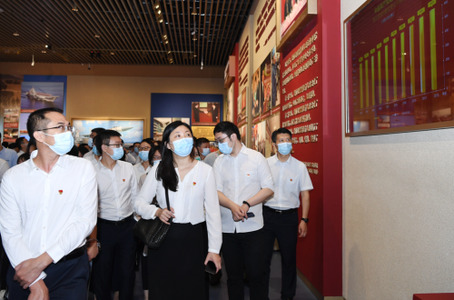 百年征程波瀾壯闊,百年初心歷久彌堅(jiān)。黨史館猶如一部立體黨史教科書(shū),全體參觀(guān)人員尋著中國(guó)共產(chǎn)黨百年歷史發(fā)展脈絡(luò),仔細(xì)參觀(guān)了“建立中國(guó)共產(chǎn)黨 奪取新民主主義革命偉大勝利”“成立中華人民共和國(guó) 進(jìn)行社會(huì)主義革命和建設(shè)”“實(shí)行改革開(kāi)放 開(kāi)創(chuàng)和發(fā)展中國(guó)特色社會(huì)主義”“推進(jìn)中國(guó)特色社會(huì)主義進(jìn)入新時(shí)代 全面建成小康社會(huì) 開(kāi)啟全面建設(shè)社會(huì)主義現(xiàn)代化國(guó)家新征程”等4個(gè)部分的展覽內(nèi)容。2600余幅圖片和3500多件套文物實(shí)物,全方位、多角度地展現(xiàn)了黨的不懈奮斗史、不怕?tīng)奚贰⒗碚撎剿魇贰槊裨旄J贰⒆陨斫ㄔO(shè)史。全體參觀(guān)人員認(rèn)真觀(guān)看豐富翔實(shí)的圖片、資料和鮮活的實(shí)物、逼真的復(fù)原景觀(guān),不時(shí)駐足討論,共同回顧感悟中國(guó)共產(chǎn)黨領(lǐng)導(dǎo)人民創(chuàng)造的新民主主義革命的偉大成就、社會(huì)主義革命和建設(shè)的偉大成就、改革開(kāi)放和社會(huì)主義現(xiàn)代化建設(shè)的偉大成就、新時(shí)代中國(guó)特色社會(huì)主義的偉大成就。