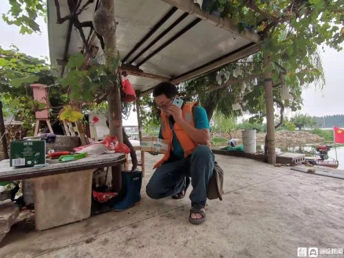 上午10點半,已經被汗水濕透衣服的王少朋回到了丁樓村碼頭。簡單和碼頭上的村民寒暄兩句,甚至都來不及坐下喝口水,王少朋就收起船錨出發了。因為時間不容許他耽擱太久,接下來的四個村子,全都在水上,龔莊和柳溝相距較近,但是王蘇白和建閘距離較遠,從王蘇白村到建閘村,要在湖上航行整整一個半小時。