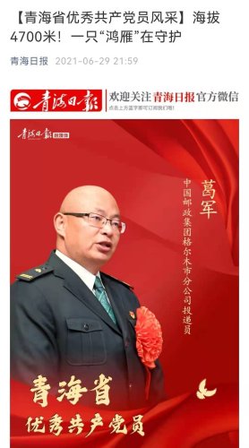 我在想,葛軍接受采訪,是沖著咱《人民日報(bào)》的面子?后來,一路同行聊得深了,我才知道葛軍早已是媒體的常客,也是見過大陣仗的:作為郵政系統(tǒng)的先進(jìn)典型,他榮獲過“全國五一勞動獎?wù)隆薄爸袊嗄晡逅莫務(wù)隆薄扒嗪J?yōu)秀共產(chǎn)黨員”,早在2017年就曾接受過一眾央媒的采訪,浩浩蕩蕩幾輛采訪車,跟著他的郵車從格爾木一路開到了唐古拉,好不風(fēng)光。
