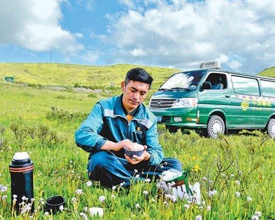 現在,叫他“草原信使”的少了,叫他“快遞小哥”的多了。哈弄奪機挺喜歡這個新稱呼,覺得自己年輕了不少。但跟風風火火的“快遞小哥”不同,草原上開的是“慢車”。若爾蓋的旅游資源豐富,這幾年不少外地游客慕名而來,又不熟悉路況,被困是常事,幫助游客也成了哈弄奪機的另一項工作。