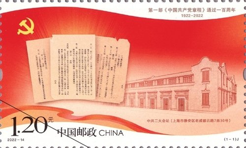 7月23日,《第一部<中國共產(chǎn)黨章程>通過一百周年》紀(jì)念郵票將發(fā)行。該套郵票一套1枚,全套面值為1.20元,計(jì)劃發(fā)行680萬套。
