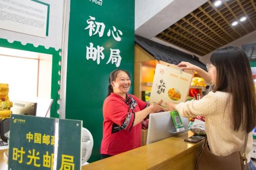石柱縣分公司文化傳媒中心負(fù)責(zé)人向志華介紹,初心郵局在布置方面融入了黨建、石柱、本土文化、農(nóng)特產(chǎn)品等眾多元素,兩層樓構(gòu)造,一層展示當(dāng)?shù)氐霓r(nóng)特產(chǎn)品,比如中益土蜂蜜、鹽竹筍、紅辣椒等;二層通過(guò)紀(jì)念郵票區(qū)、家書(shū)初心區(qū)、文創(chuàng)產(chǎn)品區(qū),提供特色郵政服務(wù)。“主題郵局取名初心郵局,一方面是契合當(dāng)?shù)爻跣男≡骸⒊跣膹V場(chǎng)的主題,另一方面也是展示‘人民郵政為人民’的初心。”