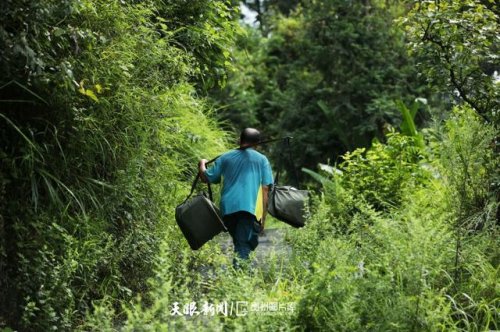 皮膚黝黑發亮,雙鬢、胡須微微泛白,額頭紋、眼角紋在微笑間清晰可見,雙目炯炯有神,步伐穩健干練——見到眼前這位扎根于貴州偏遠山區35年的退伍老兵張林昌時,他正在錦屏縣河口鄉裕和村給村民送郵件。