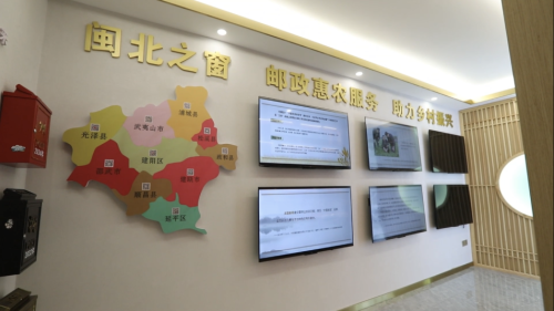 在郵局二樓的惠農(nóng)產(chǎn)品展銷中心,各類當?shù)鼗蒉r(nóng)助農(nóng)產(chǎn)品琳瑯滿目,當中展陳銷售的不僅有武夷三寶(即東路上梅的筍干,南路武夷鎮(zhèn)、星村鎮(zhèn)的茶葉和北路嵐谷的北米),還有五夫白蓮、香菇干、黑木耳等武夷農(nóng)特產(chǎn)品。