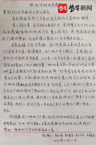提及信中的內容,鄭小愛說:“幾十年沒和舅舅見過面,很多話想說卻又不知道從哪兒說起,我在信中告訴舅舅,母親和我們姐弟四人現在過得都很好,信中還問了他的生活怎么樣,家里的孩子工作學習如何,最后留了我和弟弟的電話號碼,希望他看到信以后能跟我們聯系。”