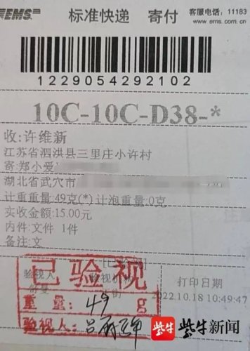 10月19日下午,郵遞員曹子祥像往常一樣,按照地址把一封封信件送到收信人手中。然而,一封信息不完整的信件讓他犯了難。收件人叫許維新,沒有電話號碼,地址為泗洪縣三里莊小許村。這里的村民早就已經搬遷,以現有的信息,無法找到收件人。