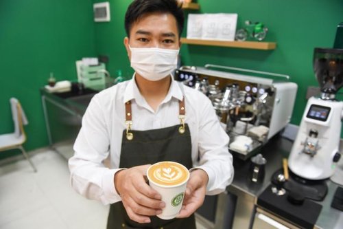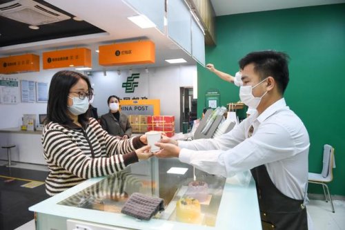 2月15日,顧客在深圳咖啡主題郵局取咖啡。新華社記者 毛思倩 攝