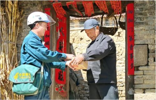 于彥富給張家莊村村民任明海送來(lái)包裹。