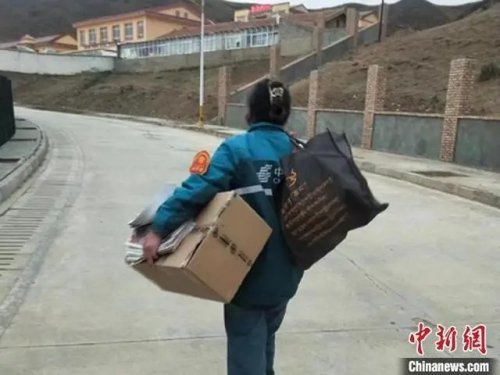 圖為麥桃吉送快遞途中。(資料圖,中國郵政集團有限公司甘肅省瑪曲縣分公司供圖)