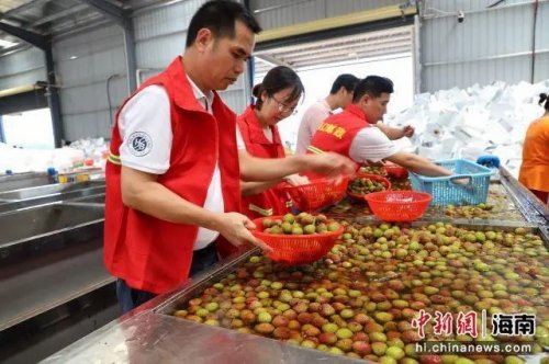 在中國郵政農品基地——海南海口三門坡荔枝基地,海口市郵政分公司金融業務部管理員鐘昌宏介紹,因荔枝發貨量激增,海口郵政組織幫扶工作隊來荔枝打包現場支援,工作隊會對每顆荔枝進行分揀把控,確保每顆發往全國的荔枝品質。