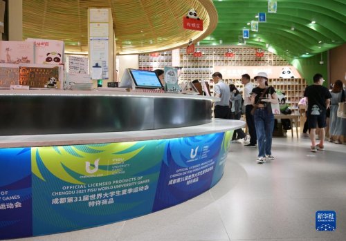這是6月12日在熊貓郵局旗艦店內拍攝的標有“成都第31屆世界大學生夏季運動會特許商品”柜臺。