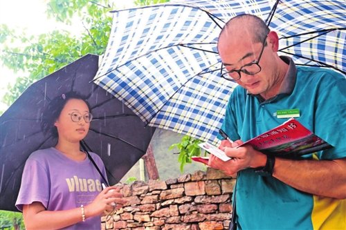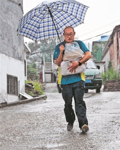 7月26日,本來是艷陽高照的一天,下午卻下起了瓢潑大雨。為了盡早送出考生的錄取通知書和客戶的快遞,許桂明開車沖入雨中,奔向遠處的小山村。