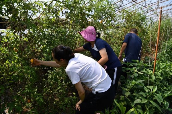 8點30分,記者與2號小園地園主陳娜相約,一起采摘蔬菜。從沒下過菜地的“小白”們,手忙腳亂也沒有陳大姐一個人摘得快。不過,在大家的共同努力下,訂單蔬菜很快就采摘完畢。帶著勝利的果實,記者和陳大姐一起趕往村里的郵政綜合便民服務(wù)站。
