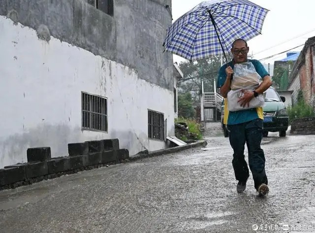 許桂明停好車,撐起傘,把郵件緊緊抱在懷里跑進(jìn)村里的小路。