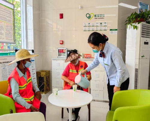 為切實履行社會責任,改善戶外勞動者喝水難、休息難等問題,今年以來,郵儲銀行連云港市分行積極響應全國總工會《金融行業(yè)開放共享服務資源 攜手關愛戶外勞動者倡議書》號召,在總、省行統(tǒng)一部署下,依托轄內(nèi)營業(yè)網(wǎng)點扎實推進“郵愛驛站”建設,為交通警察、環(huán)衛(wèi)工人、建筑工人、快遞員等戶外勞動者提供志愿服務,讓“郵愛驛站”成為戶外勞動者休憩的好去處。