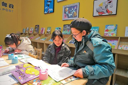 在“愛心書屋”,郵政工作人員陪伴孩子們度過充實(shí)、溫馨的寒假時(shí)光?! 跞狡啐垺z