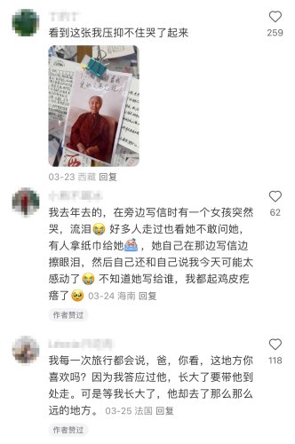 他拍下這些讓人哽咽的信件,發(fā)在社交平臺上,許多曾經(jīng)到訪拉薩的游客都表示,自己也曾在這面墻前感動不已。