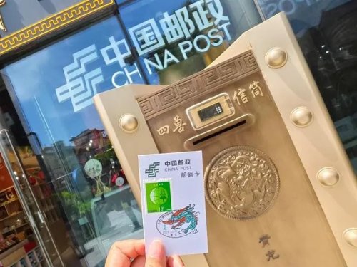 夜色里的大唐不夜城街區(qū),2021年建在這里的大唐郵驛主題郵局,因?yàn)殂~質(zhì)打造四面投信的“銅匭·四獸”郵筒,顯得格外扎眼。這里作為全國(guó)首家以唐文化為主題的郵局,一款款獨(dú)具巧思的郵政產(chǎn)品——大唐特色明信片、手辦、各式章戳,2024年全國(guó)首枚生肖龍?zhí)咨幕沾恋龋瑤褪忻裼慰椭庇^了解郵驛文化,吸引大量游客前來打卡,是目前西安日接待游客量最大的主題郵局。