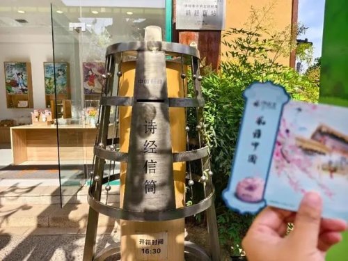 詩經(jīng)里小鎮(zhèn)“孫陽”“望舒”的經(jīng)典IP形象,是詩經(jīng)驛站主題郵局的醒目地標(biāo)。5月15日上午,記者打卡詩經(jīng)驛站,遇到許多游客在這里郵遞信件、明信片,選購各款詩經(jīng)紀(jì)念封、主題郵票,通過詩經(jīng)郵筒遙寄祝福,從詩經(jīng)里漫郵世界 。