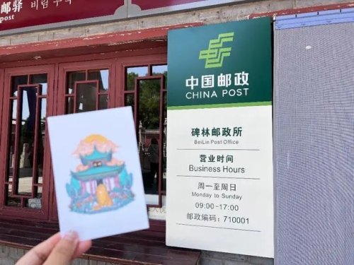 碑林郵驛主題郵局,藏身西安碑林博物館內(nèi),幾乎是西安面積最小的主題郵局,它有西安首個(gè)主題特色郵筒,碑石的形狀刻有象征吉祥的云紋。自2016年?duì)I業(yè)以來,承擔(dān)信件、包裹、匯兌、印刷品等郵政普遍服務(wù)業(yè)務(wù)的同時(shí),集章拍照、文創(chuàng)選購……小小主題郵局“五臟俱全”。也是西安第一個(gè)主題郵局。