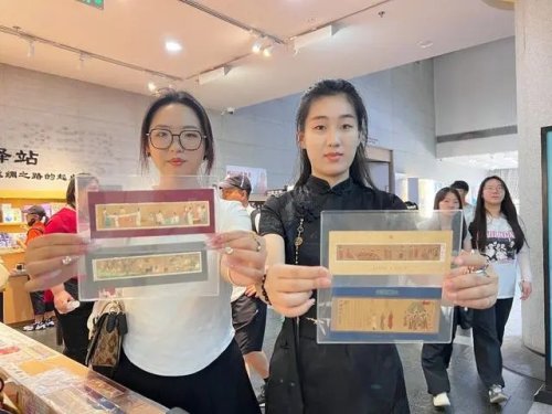 在陜歷博絲路驛站主題郵局,兩名從武漢來的“00后”大學(xué)生徐睿和李芷涵,也發(fā)現(xiàn)了驚喜。徐睿說:“我們是學(xué)藝術(shù)設(shè)計(jì)的,剛剛在樓上參觀時(shí),看到了難得一見的半壁仕女圖,沒想到在樓下就發(fā)現(xiàn)了仕女圖的特種郵票。特別開心!”