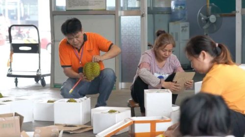 眼前,郵政工作人員正忙著將一個(gè)個(gè)新鮮的榴蓮打包。據(jù)這里的負(fù)責(zé)人潘新杰介紹,憑祥郵政倉(cāng)是2017年設(shè)立的,成為當(dāng)?shù)剜]政服務(wù)東南亞水果寄遞體系中的關(guān)鍵一環(huán)。通過“引商入倉(cāng)”“電商造包”等增值服務(wù)舉措的相繼實(shí)施,該倉(cāng)已從最初單一的收寄服務(wù),逐步拓展至集倉(cāng)儲(chǔ)、銷售、打包、寄遞為一體的全環(huán)節(jié)服務(wù),不僅提升了郵政服務(wù)的綜合效能,更在扶持當(dāng)?shù)仉娚炭蛻舴矫姘l(fā)揮了積極作用。