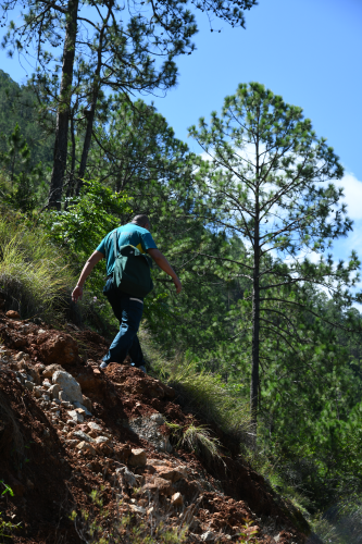 剛到木里時(shí),采訪組曾跟隨何勇和王銀海從王順友故居出發(fā),沉浸式體驗(yàn)了一段王順友的“馬班郵路”,曾經(jīng)的郵路已被茂密的植被覆蓋,但沿著那些深深淺淺的腳印,依然能找到路的蹤跡。山路陡峭且泥濘,沿途青岡草的荊棘刺痛皮膚,記者僅走了2公里就氣喘吁吁,但遠(yuǎn)處還有海拔4192米的查爾瓦梁子、水流湍急的雅礱江、懸崖邊的“九十九道拐”需要穿越。