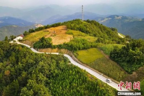 黃德印駕駛面包車穿行山路。(無人機(jī)照片)張倩龍 攝