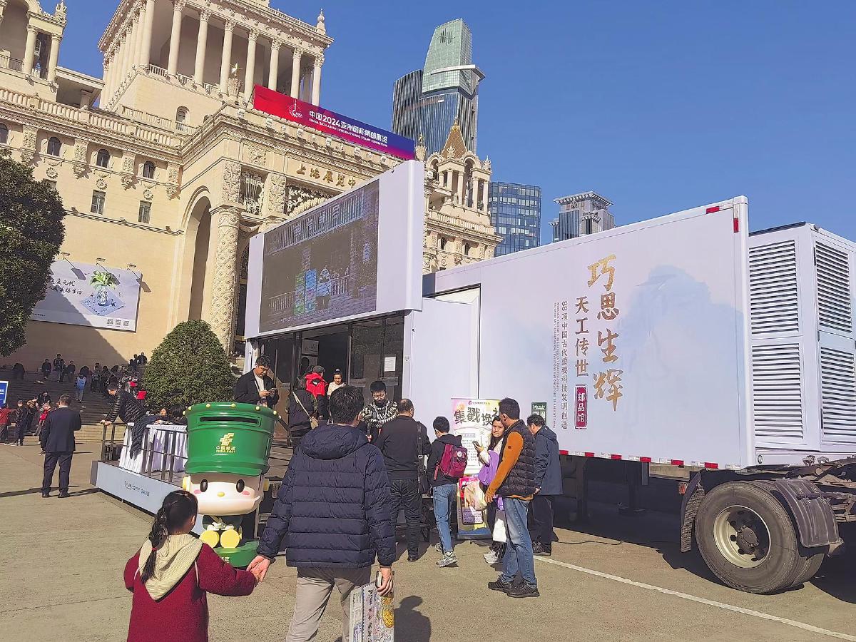 中國集郵有限公司、中郵科技股份有限公司聯(lián)合推出了集古代發(fā)明主題郵品展示和LED顯示屏、舞臺、可拓展體驗區(qū)等功能于一體的移動展覽大篷車,為亞郵展增添了科技味。