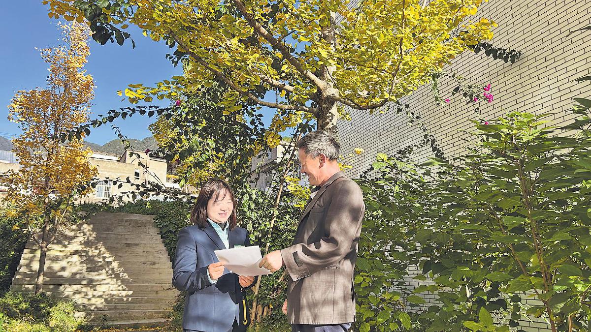 種樹者必培其根,修德者必養(yǎng)其心。在麻隴鄉(xiāng),大部分年輕人外出務(wù)工,只有老人留守在家。面對這些老人,李英不只把他們當(dāng)作客戶,更是成為他們的“知心人”?!拔椰F(xiàn)在也是麻隴鄉(xiāng)的一員?!崩钣⒄f。在麻隴鄉(xiāng)的兩年里,李英將工作融入當(dāng)?shù)卮迕竦纳?,她熟知每家每戶的基本情況,家長里短也都能聊得上話,大家有需要都最先想到她。除此之外,李英還是老人們了解新鮮事物的窗口,不僅為他們帶去外界的新消息,還常常組織院壩會,用通俗易懂的語言為老人講解金融知識、反詐知識。“小李是我們的好鄰居,大家都信得過她哩?!笨蛻籼婆繉钣⒌姆?wù)很認(rèn)可,把資金都存在了麻隴營業(yè)所。從“身入”到“心入”,李英扎根鄉(xiāng)村煙火,以真誠的服務(wù)回應(yīng)著村民的真切期盼。