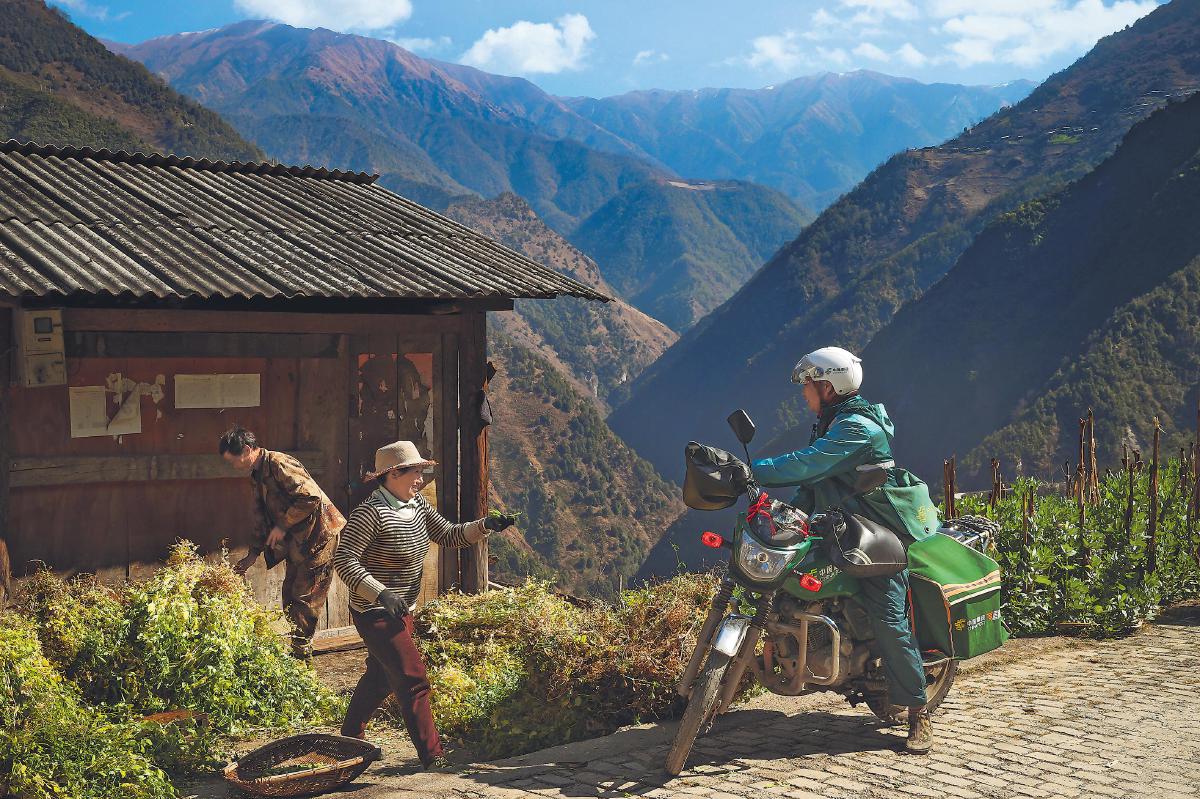 每一次郵件妥投,鄉(xiāng)親們和桑南才的臉上都會洋溢著幸福的笑容?!跣氯A社記者 李賀 攝