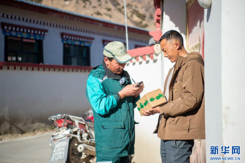 1月19日,郵遞員索朗次仁在打電話通知取件。
