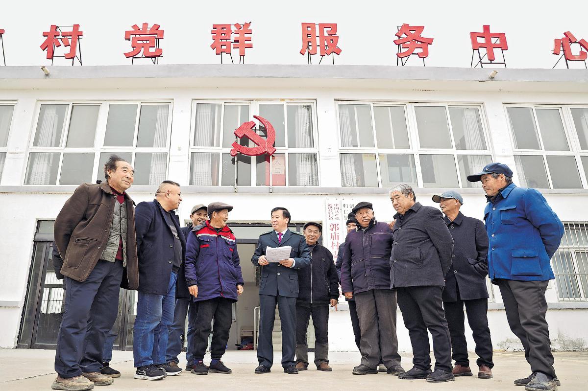 全國人大代表、江蘇省宿遷市泗洪縣郵政分公司歸仁支局局長殷勇向當(dāng)?shù)厝罕娦v全國兩會(huì)精神。 □柏濱豐 張成 攝