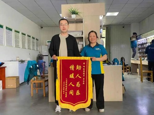 4月14日,湖北荊州市沙市區(qū)太岳攬投部上演感人一幕,市民陳先生將一面寫著“助人為樂(lè) 情暖人間”的錦旗交到郵遞員李合英手中,代表其85歲父親感謝她的救命之恩。