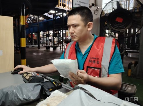 毛自學(xué)在??趪H郵件交換站處理國際郵件(央廣網(wǎng)記者 付美斌 攝)