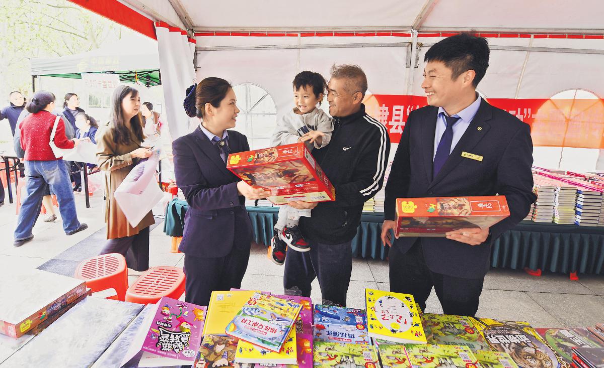 4月18日,“書香古邑·品質(zhì)無棣”全民閱讀季暨“玫瑰書香飄四季”閱讀活動在山東省無棣縣新區(qū)廣場舉行。無棣縣郵政分公司向6所學校各捐贈了價值2000元的圖書,向勞動模范、先進教師等15名代表分別捐贈價值200元的圖書。□張同勇 攝影報道