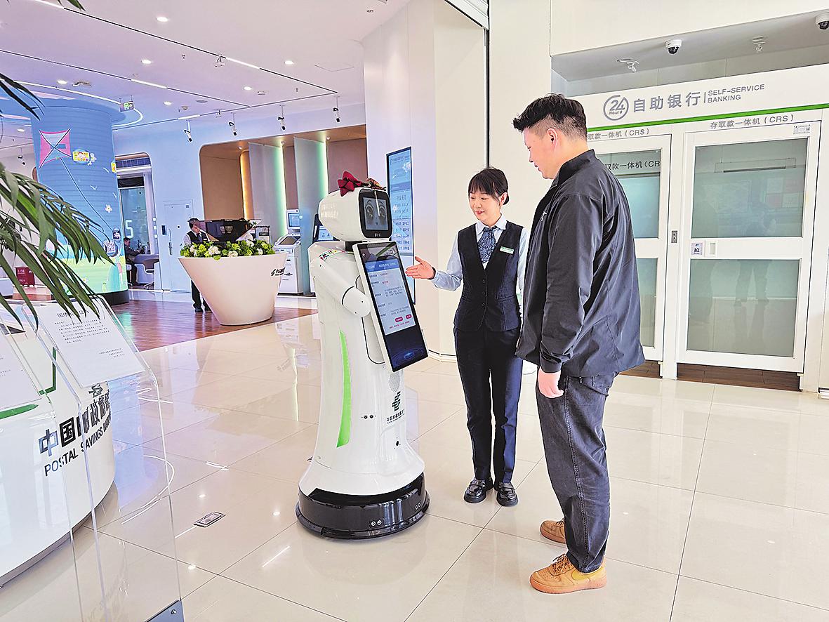 “尊敬的VIP客戶王先生,您預約的理財經(jīng)理已在3號窗口等候?!?月12日9點整,在郵儲銀行河南省分行直屬支行的營業(yè)大廳里,智能管家機器人“郵郵”已經(jīng)開始了一天的工作?!班]郵”能夠提供客戶引導、業(yè)務講解、產(chǎn)品營銷等服務,可實現(xiàn)營銷觸客立體化、營銷結果可視化?!暗谝淮我姷綍鲃哟蛘泻舻你y行機器人,孩子特別喜歡,每次只要聽說我來郵儲銀行,她都要跟著?!编嵵菔忻駨埮空f話時,她的女兒小美正在一旁開心地和“郵郵”聊著天,機器人靈動的表情和幽默的應答引得周圍客戶紛紛駐足。