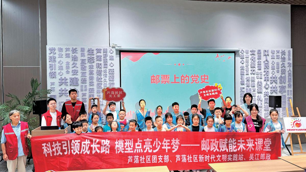 吳江郵政的黨員志愿者通過一枚枚珍貴的郵票,向社區(qū)的青少年們講述了中國共產(chǎn)黨從誕生到進行革命斗爭再到蓬勃發(fā)展的偉大歷程。
