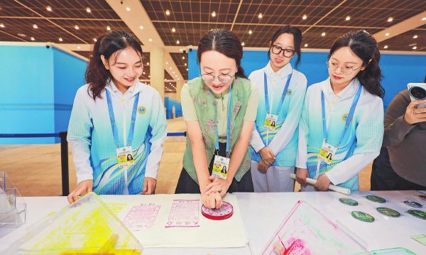 天津郵政充分發(fā)揮自身文化屬性,聚焦“傳統(tǒng)文化、大國外交、魅力天津”三大主題,結(jié)合天津城市特色,推出45款彰顯天津文化和郵政文化的郵品。同時(shí),天津郵政設(shè)置郵品互動體驗(yàn)區(qū),展出中國首套郵票——大龍郵票。媒體記者和工作人員在欣賞郵票珍品的同時(shí),還能體驗(yàn)大龍郵票拓印制作過程(見圖),更加深刻感受到中國郵政的歷史厚重感以及天津的文化底蘊(yùn)。