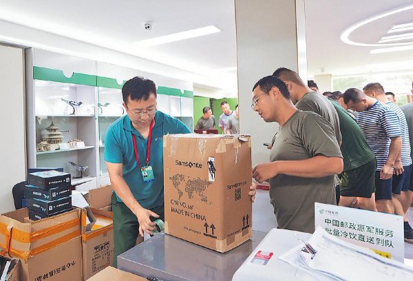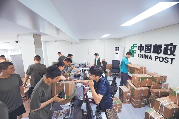 郵政工作人員為官兵收寄包裹,確保當(dāng)日收寄、當(dāng)日出口。